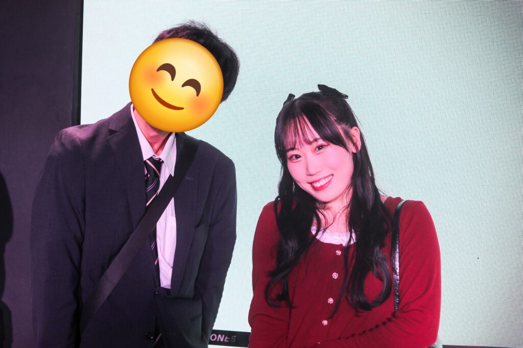 あもちとツーショ。仕事終わりスーツでそのまま行ったら「大好物」と喜んでた🤭「パパ活」「港区」などのワードがあまり醸し出されていない服装で安心した🤣ライブも特典会もすごく楽しかったね😊あもちがリーダーとして頑張ってくれてるから、みんなすごくいい雰囲気🥰