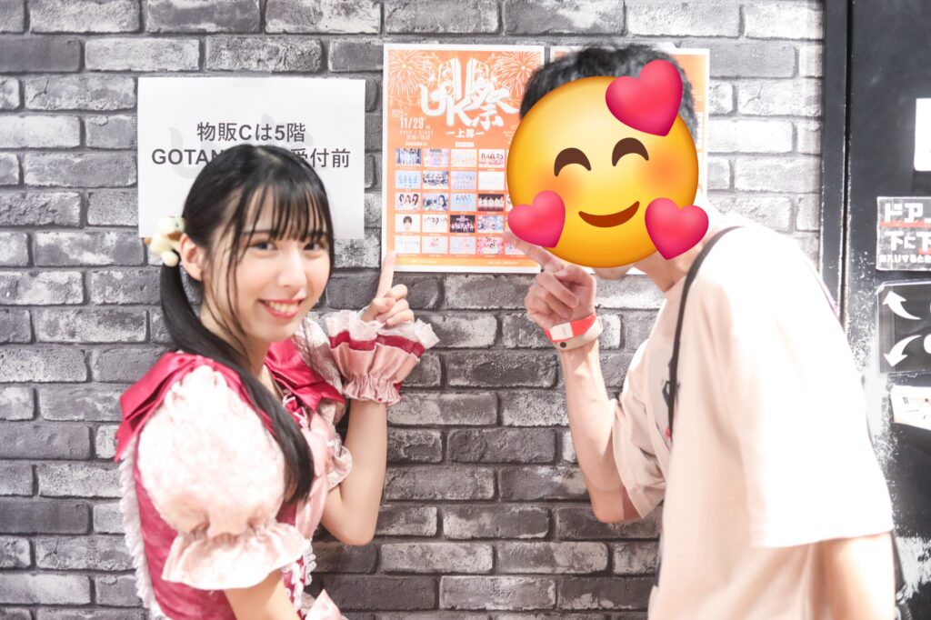 ひにゃたとUK祭のフライヤーアピールしながらツーショ。とっても楽しいイベントだったね😆embellirの出番も大盛り上がりで、あんなフロアを作れるグループが推しなの誇らしくなったし、ひにゃたの為にフロアあっためといたの察してくれて嬉しかったな🤭