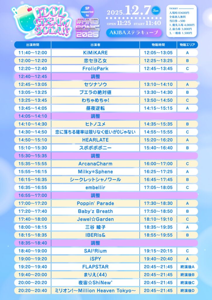 2025年12月7日 AKIBAステラキューブ IDOL CREAM SODA!!にて撮影。